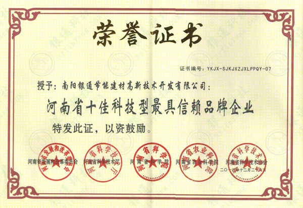 授予:南陽(yáng)銀通節(jié)能建材高新技術(shù)開(kāi)發(fā)有限公司:
