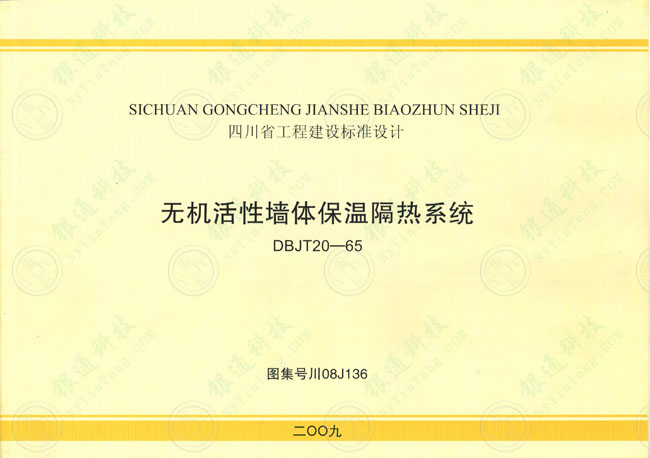 四川省工程建設(shè)標(biāo)準(zhǔn)設(shè)計(jì)《無機(jī)活性墻體保溫隔熱系統(tǒng)》統(tǒng)一編號(hào):DBJT20-65 圖集號(hào):川08J136,批準(zhǔn)部門:四川省建設(shè)廳,主編單位:四川時(shí)代建筑設(shè)計(jì)有限公司,協(xié)編單位:南陽銀通節(jié)能建材高新技術(shù)開發(fā)有限公司 南陽市銀達(dá)新型墻體材料開發(fā)有限公司