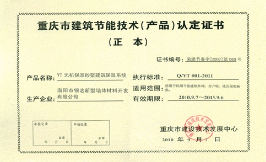 重慶市建筑節(jié)能基礎(chǔ)(產(chǎn)品)認(rèn)定證書(shū)