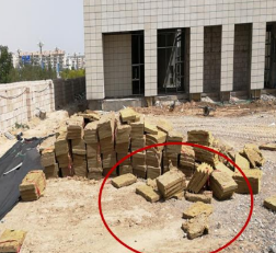 (7)建筑工程項目現(xiàn)場外保溫材料隨意堆放,也未做好外保溫材料的防護(hù)措施,嚴(yán)重影響外保溫材料的性能。