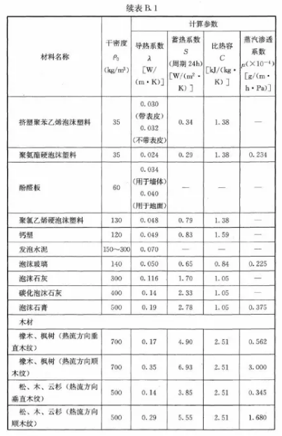 —— 附表 GB 50176-2012中對(duì)保溫材料的熱工參數(shù) ——