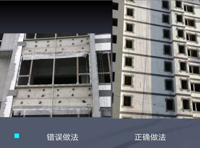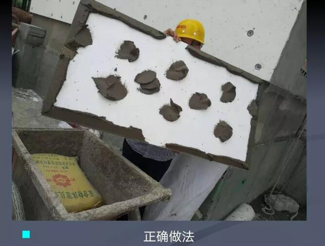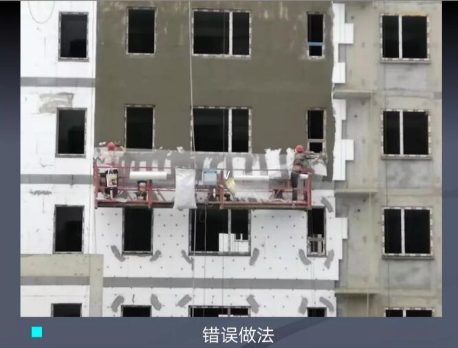 正確做法:玻纖網(wǎng)要夾在抹面層中間,即先把底面抹勻再掛玻纖網(wǎng),再抹一邊砂漿。抹面層保護保溫層并起著防裂防水抗沖擊和一定防火作用。