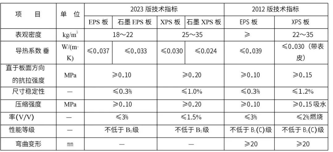 2023 版中增加了硬泡聚氨酯板、酚醛泡沫板、真空絕熱板三種保溫板,其性能指標(biāo)分別符合現(xiàn) 行行業(yè)標(biāo)準(zhǔn)《硬泡聚氨酯板薄抹灰外墻外保溫系統(tǒng)材料》JG/T 420、《酚醛泡沫板薄抹灰外墻外保溫 系統(tǒng)材料》JG/T 515、《建筑用真空絕熱板》JG/T 438 的規(guī)定。
