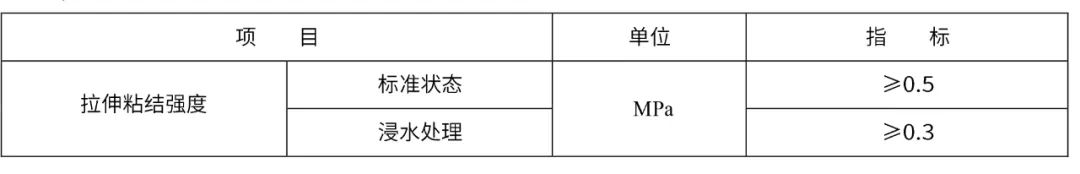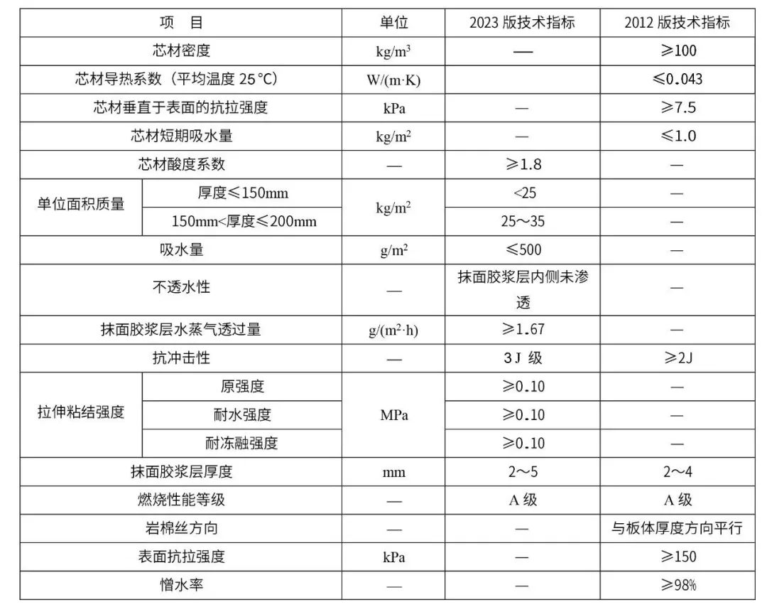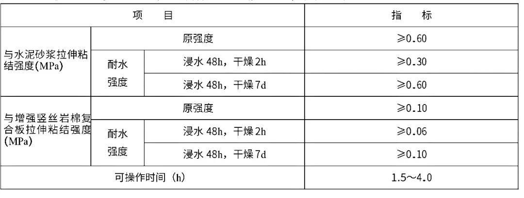 2023 版中增加了粘貼增強(qiáng)豎絲巖棉復(fù)合板用膠粘劑,性能見(jiàn)下表: