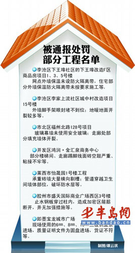市城鄉(xiāng)建設(shè)委建管局有關(guān)負責(zé)人表示,對上述施工質(zhì)量問題較多的工程項目相關(guān)責(zé)任主體和責(zé)任人,已在檢查過程中給予處罰,并予以全市通報批評,要求全市各建設(shè)行政主管部門和責(zé)任主體進一步排查工程及管理上的漏洞,切實提高青島的建筑工程質(zhì)量水平。