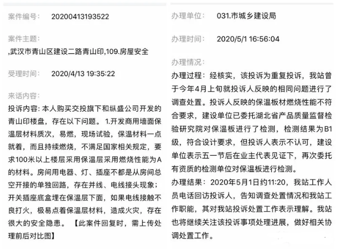 業(yè)主將發(fā)現(xiàn)的問題投訴到有關(guān)部門,有關(guān)部門委托質(zhì)量監(jiān)督檢查研究院對所用的墻體保溫板進行了檢測,檢測結(jié)果為B1級,符合設(shè)計要求,但業(yè)主表示不認可,建設(shè)單位表示五一節(jié)后在業(yè)主代表見證下,再次委托有資質(zhì)的檢測單位對保溫板進行檢測。