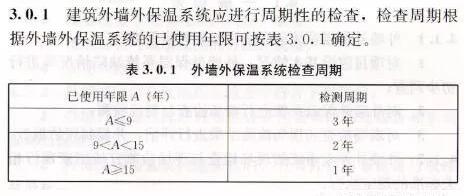 《建筑外墻外保溫系統(tǒng)修繕標(biāo)準(zhǔn)(JGJ376-2015)》規(guī)定的系統(tǒng)檢查周期