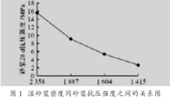 用濕砂漿密度表示建筑砂漿中的空氣含量,用灰砂質(zhì)量比表示砂漿中的水泥含量,濕砂漿密度同砂漿抗壓強度之間的關(guān)系圖如圖1所示。
