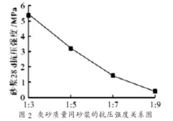 灰砂質(zhì)量同砂漿的抗壓強度之間的關(guān)系如圖2所示。