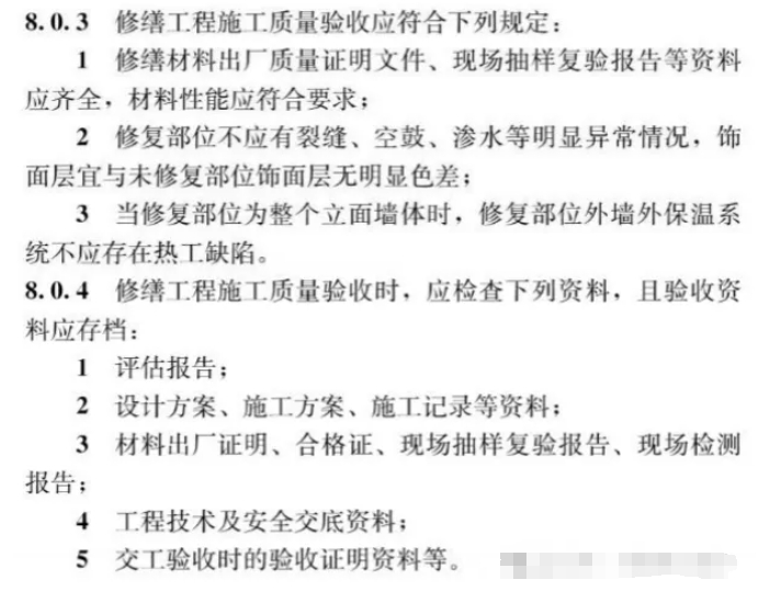 當修復的是整個立面的外墻外保溫時,驗收內容如下: