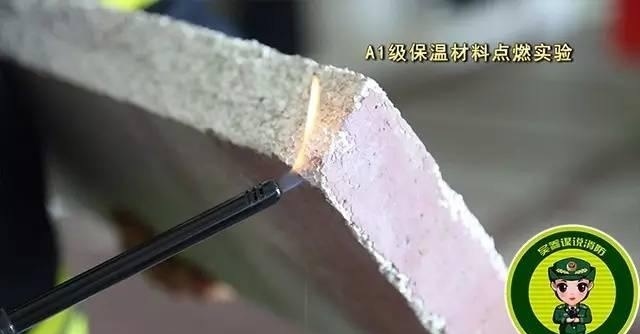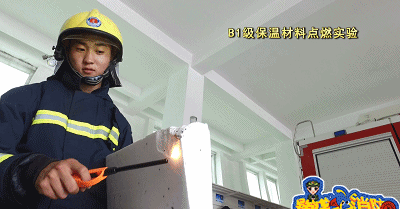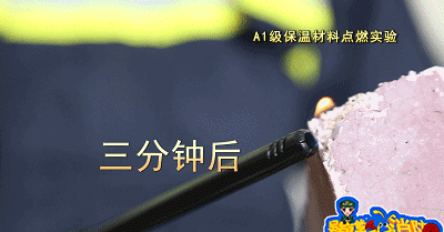 點燃A級保溫材料,保溫材料沒有出現(xiàn)一點要被點燃的跡象,持續(xù)三分鐘后,保溫材料依然沒有被點燃,但有顆粒狀物體掉落。