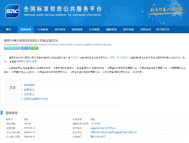 近日,國家標準計劃《建筑外墻外保溫系統(tǒng)的防火性能試驗方法》修訂開啟立項公示,該標準計劃由 TC113(全國消防標準化技術委員會)歸口,TC113SC8(全國消防標準化技術委員會建筑構件耐火性能分會)執(zhí)行 ,主管部門為國家消防救援局。本次修訂將進一步提升標準的時代性和先進性,與當前我國外墻外保溫系統(tǒng)的安全發(fā)展、雙碳背景下建筑節(jié)能的安全發(fā)展相適應,以高水平安全服務高質(zhì)量發(fā)展。本標準適用于安裝在建筑外墻上的非承重外保溫系統(tǒng)的防火性能試驗。主要技術內(nèi)容為:術語和定義、試驗裝置、試樣、狀態(tài)調(diào)節(jié)、試驗程序、試驗后的檢查、試驗結果判定和試驗報告等。