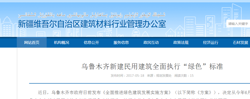 近日,烏魯木齊市政府日前發(fā)布《全面推進(jìn)綠色建筑發(fā)展實(shí)施方案》(以下簡(jiǎn)稱(chēng)《方案》),決定從今年6月1日起,烏魯木齊市新建民用建筑全部執(zhí)行綠色建筑標(biāo)準(zhǔn)。這標(biāo)志著今后烏魯木齊市市民用建筑將更加節(jié)能環(huán)保。